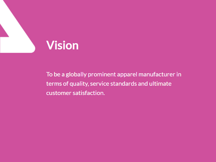 AMCO APPAREL MANUFACTURING FZC strives to become a brand of choice by superior quality products, timely delivery and best customer services at competitive prices. We also ensure best labour practices to be socially responsible for all our employees as well as for our economy.